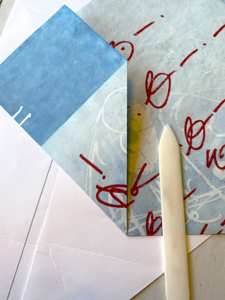 Two colour layers were then printed over the double-exposed cyanotypes- both front and back, in earthy, but vibrant acrylic ink.