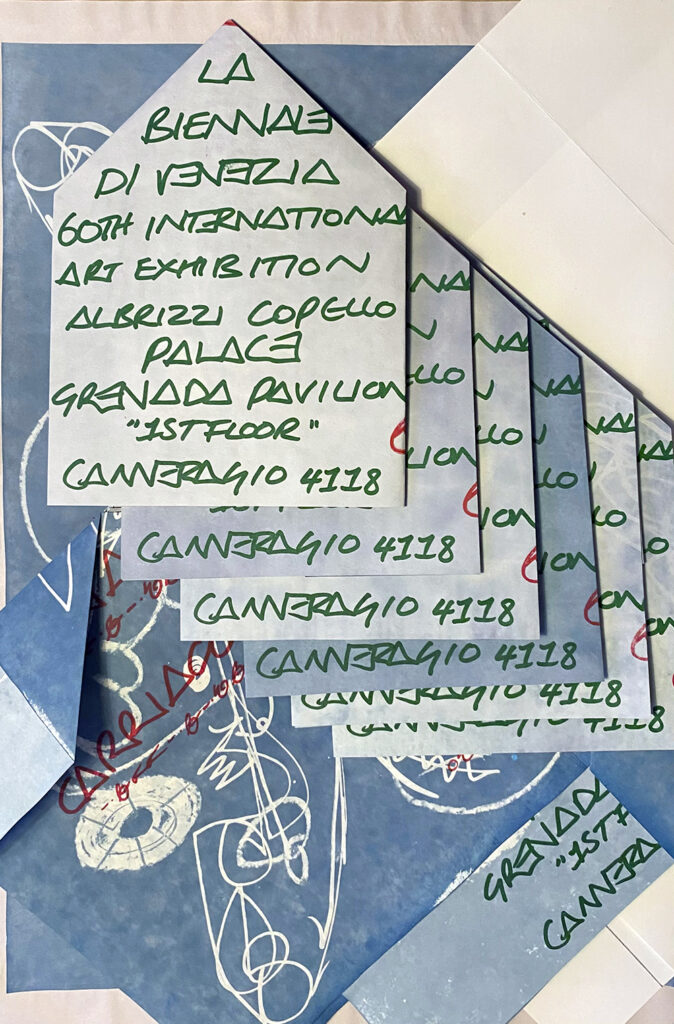 Each print is completely unique and was designed by the artist as an invitation to his works at the Grenada Pavillion of Venice Biennale 2024.